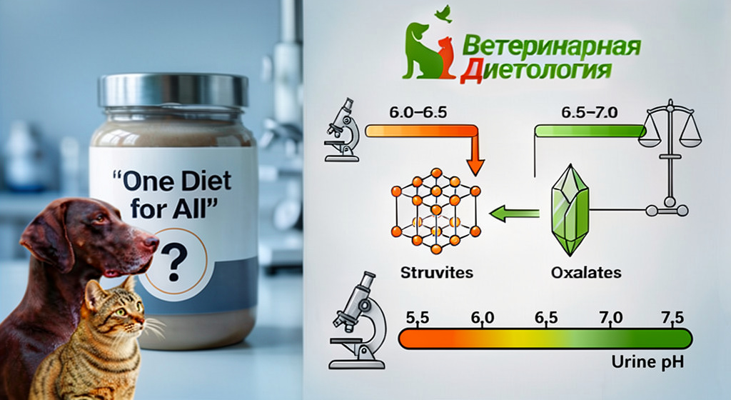 МАРКЕТИНГ ПРОТИВ ФИЗИОЛОГИИ: КРИТИКА УНИВЕРСАЛЬНЫХ ВЕТЕРИНАРНЫХ ДИЕТ ПРИ МОЧЕКАМЕННОЙ БОЛЕЗНИ У СОБАК И КОШЕК С РАСШИРЕННЫМИ РЕКОМЕНДАЦИЯМИ ПО ОКСАЛАТНОМУ ТИПУ МКБ